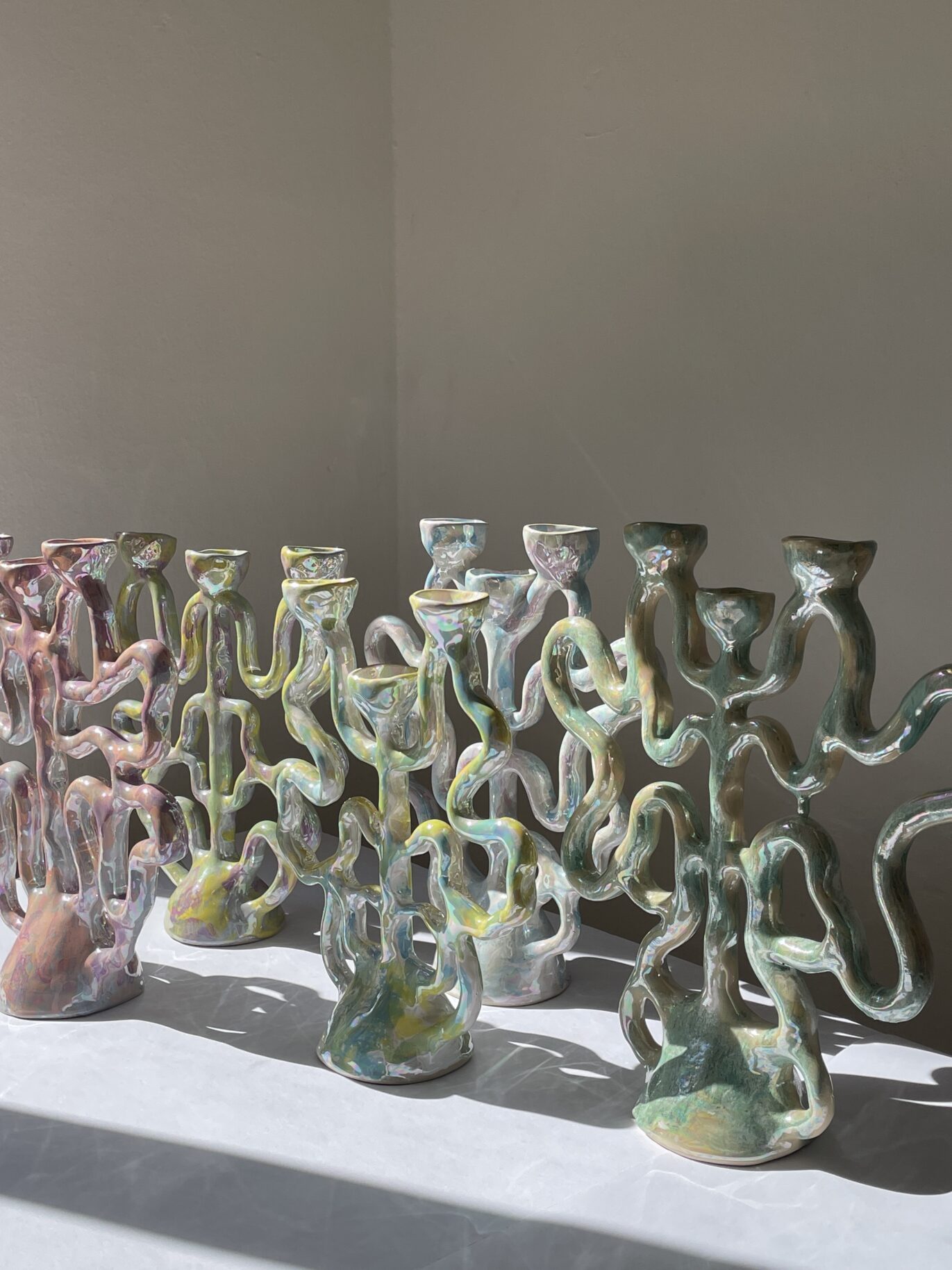 Every piece is original, hand-shaped, glazed with pearl surface.