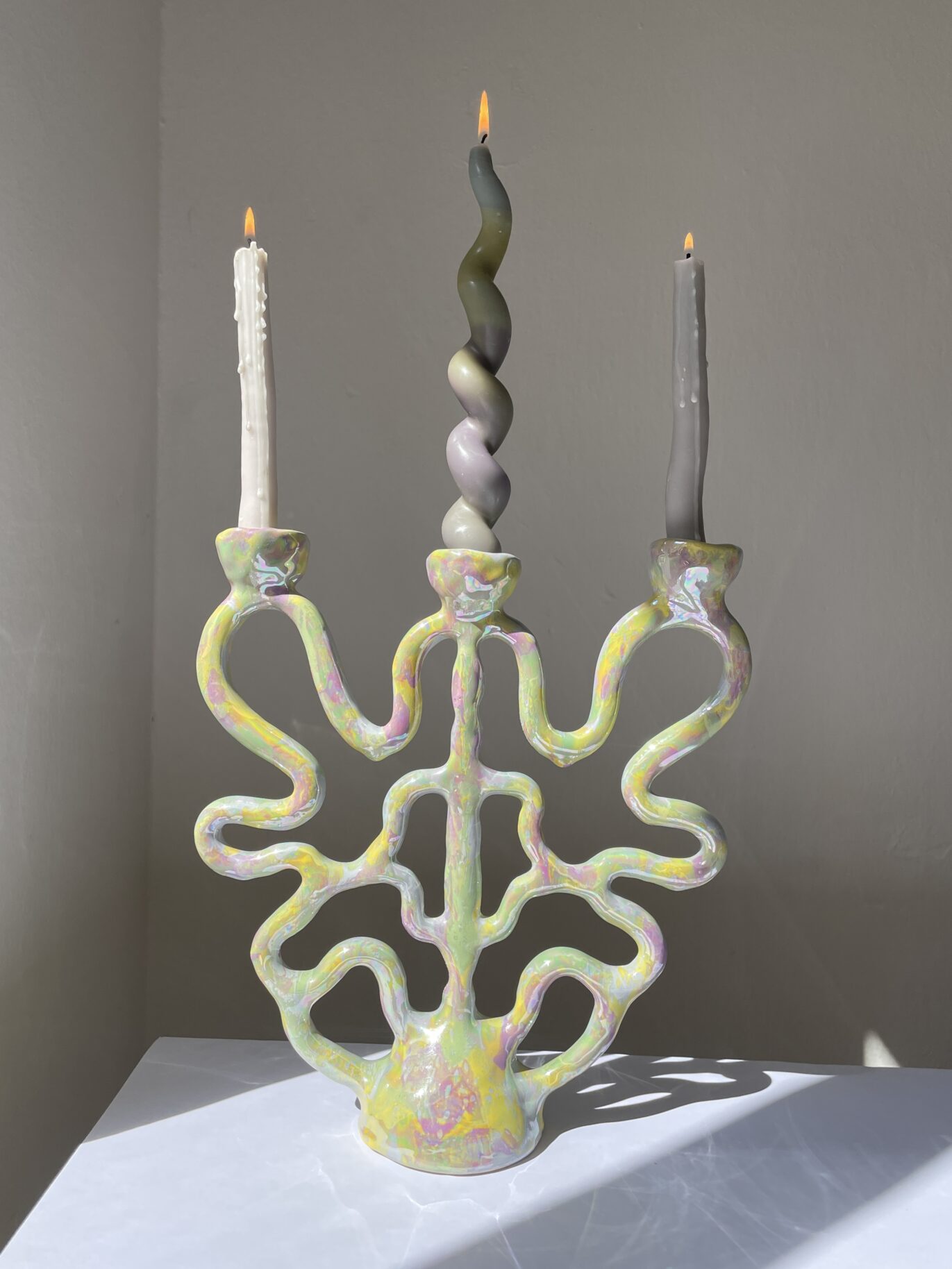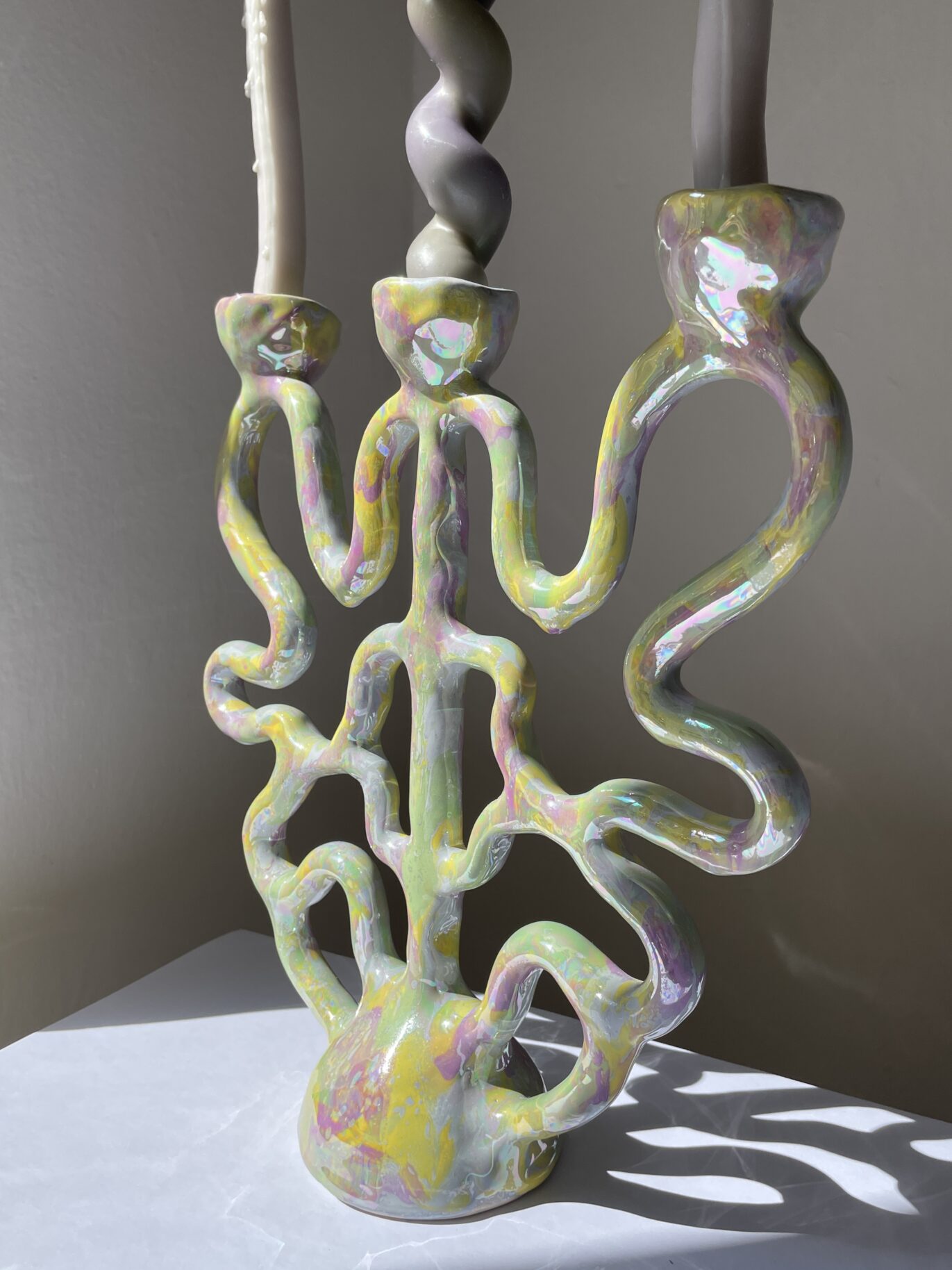 Ceramic candleholder ~ spring collection 2026 Every piece is original, hand-shaped, glazed with pearl surface. 31x26cm •one piece