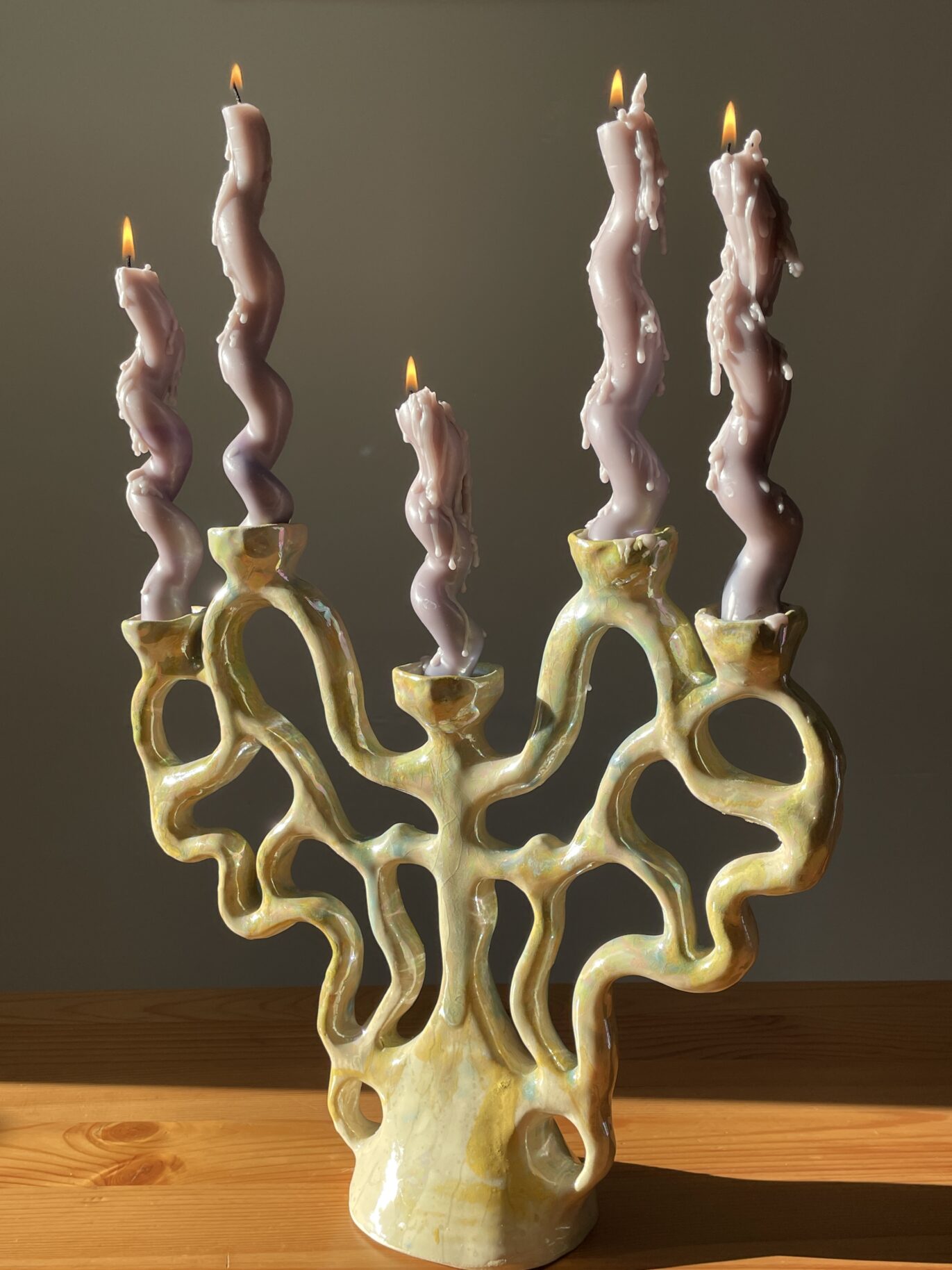 Hand made ceramic candleholder for five candles ~ summer collection 2025