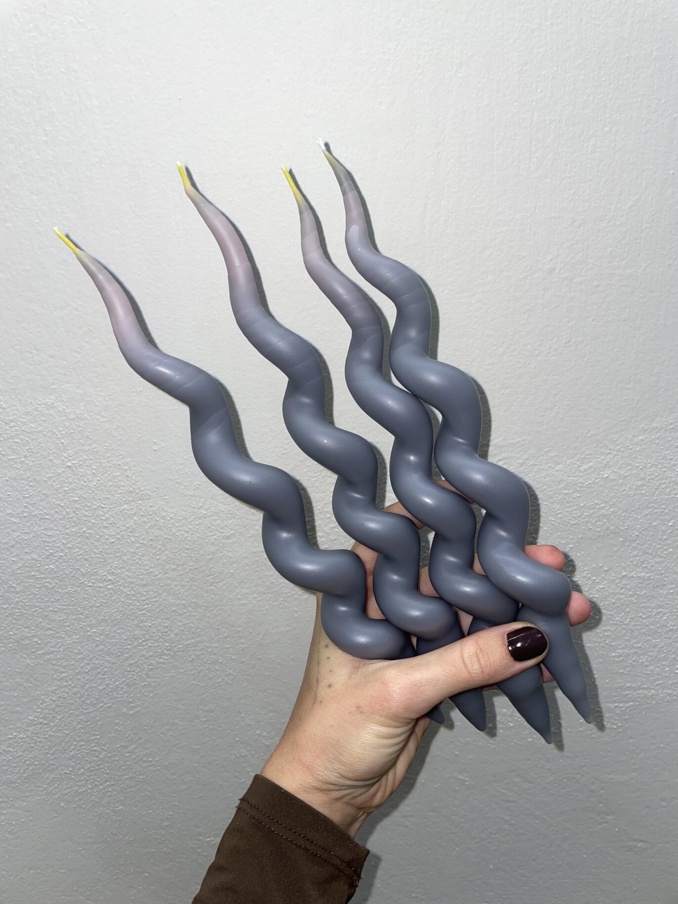 Each piece is an original, made by hand dipping in dyed bleached beeswax.