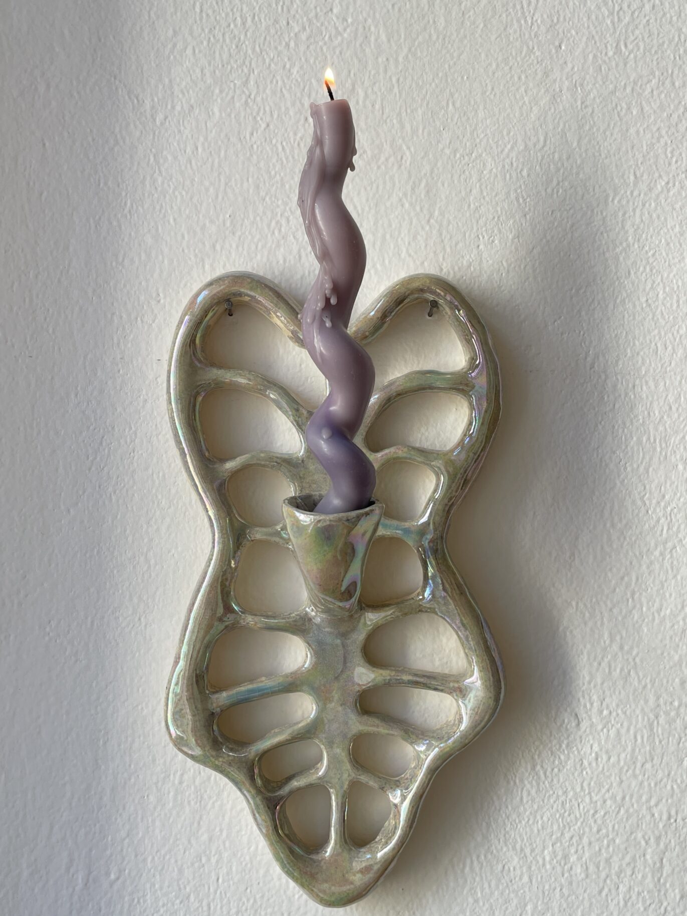 Hand made wall ceramic candleholder for one candle ~ autumn collection 2025