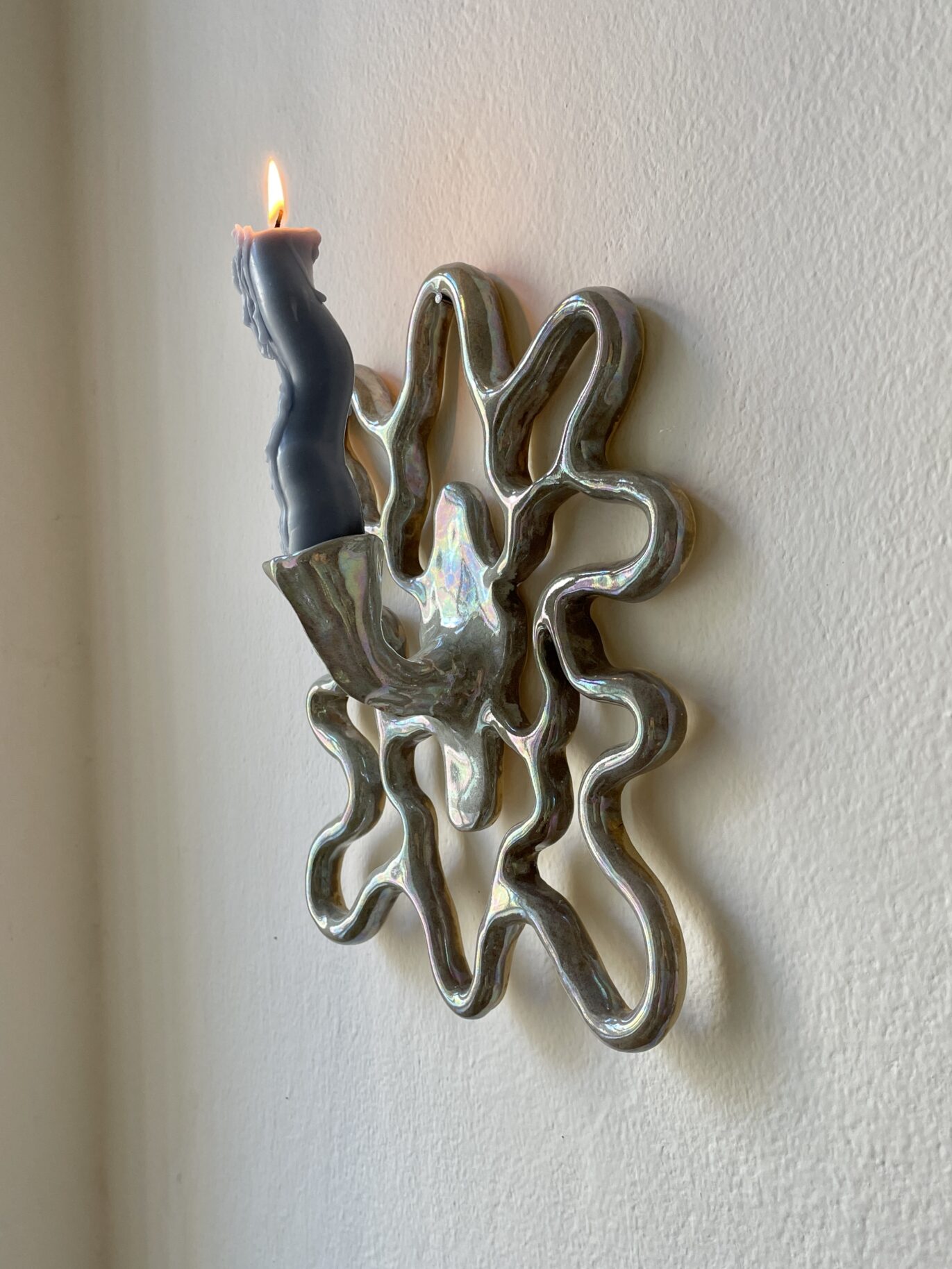 Hand made wall ceramic candleholder for one candle ~ autumn collection 2025